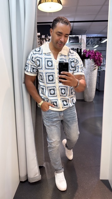 Retro Crochet Polo-Navy,Beige, Lt Blue