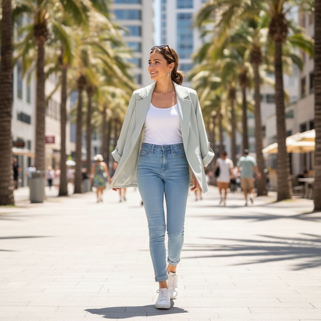 Twill Roll Tab Sleeve Long Blazer Jacket-930926