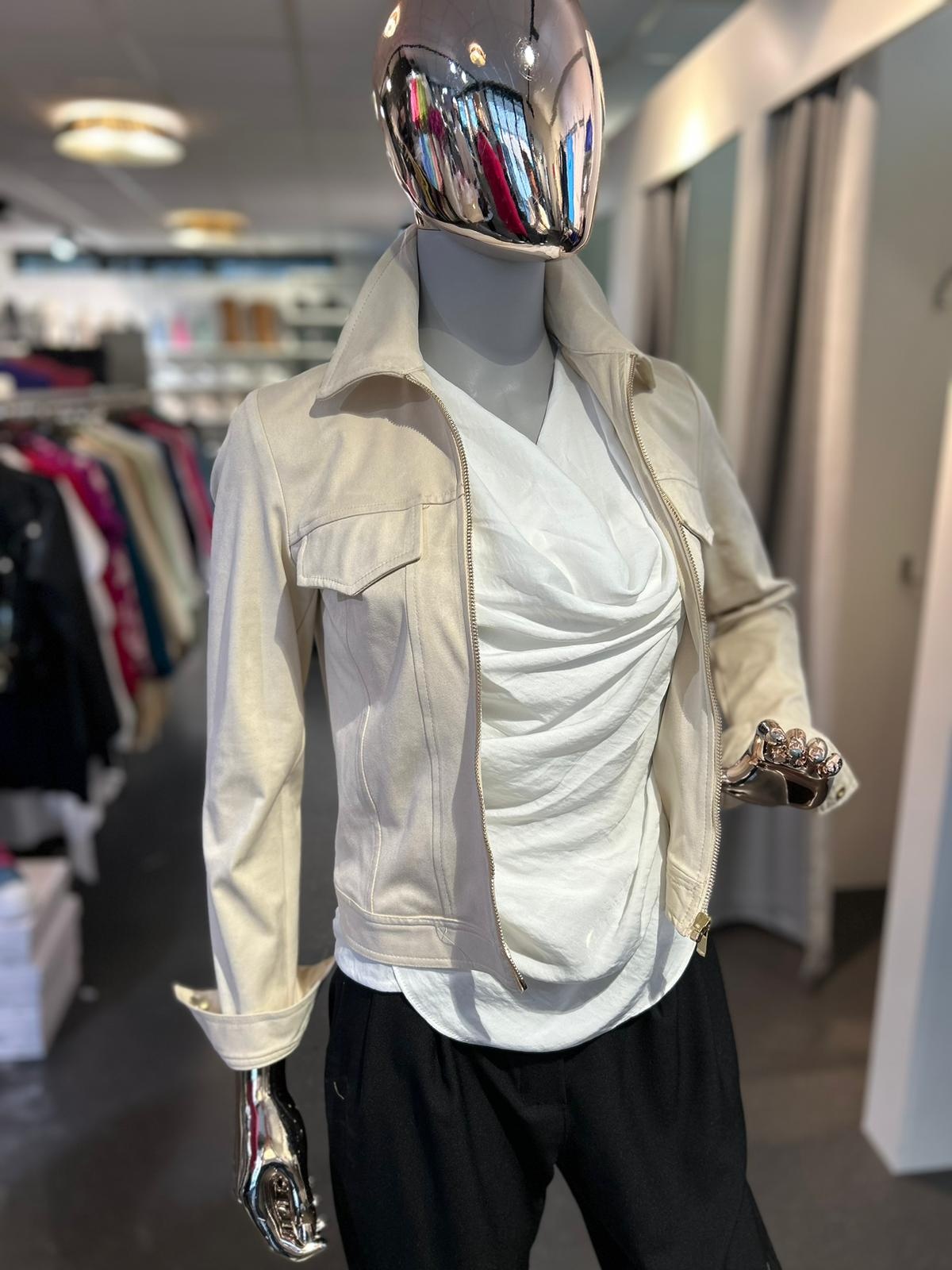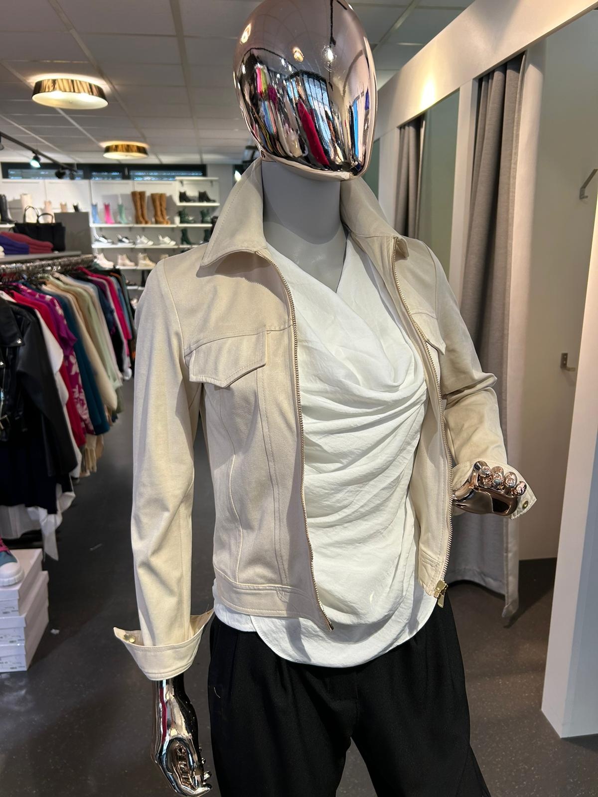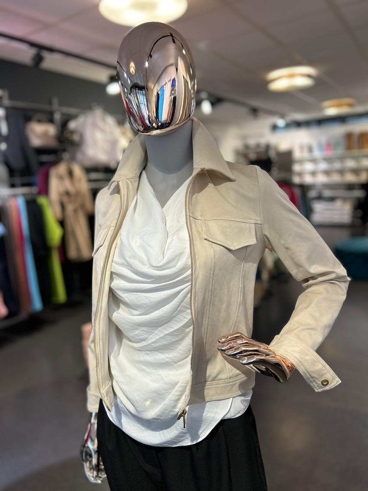 Rina Faux Suede Jacket With Zipper- Beige