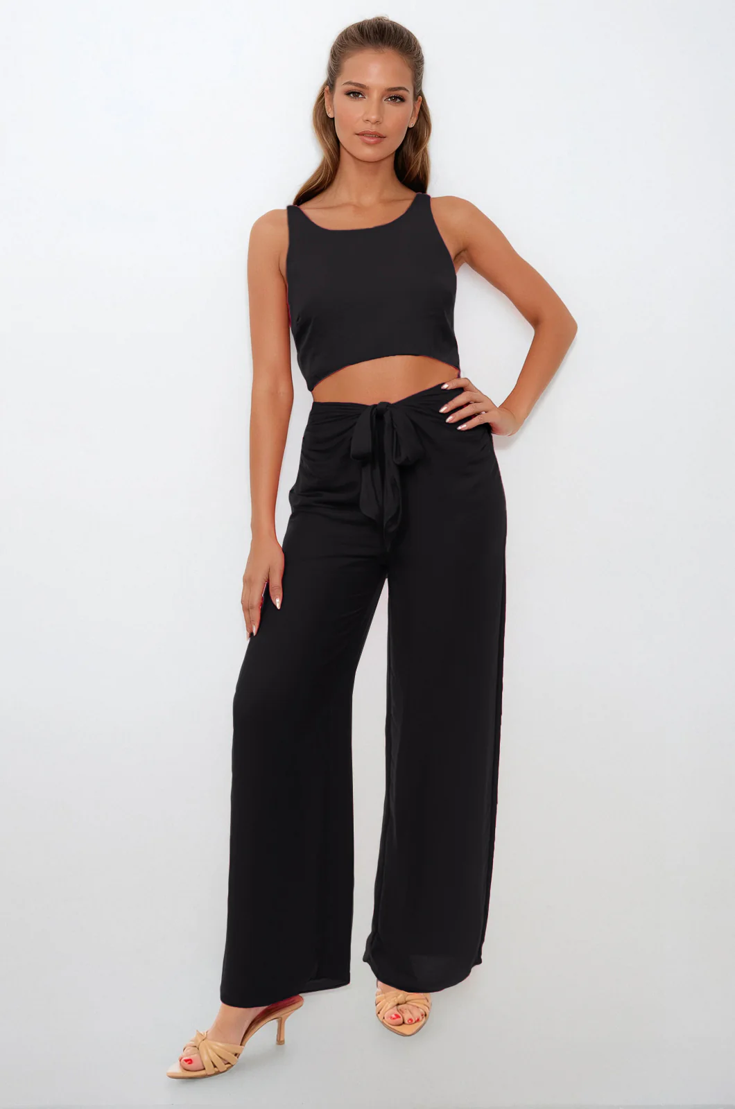 Waist Cut Out Jumpsuit- Black ER117385