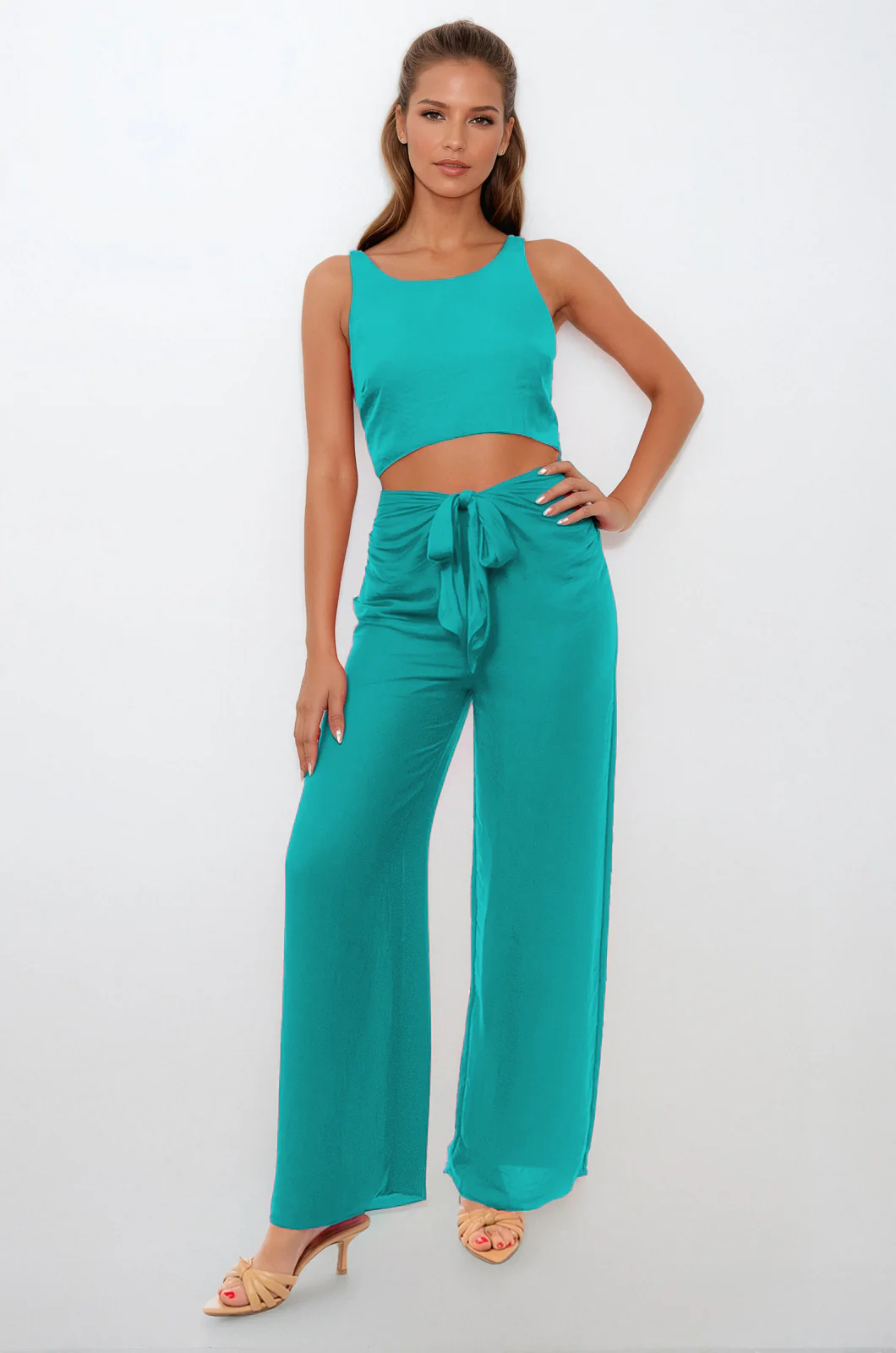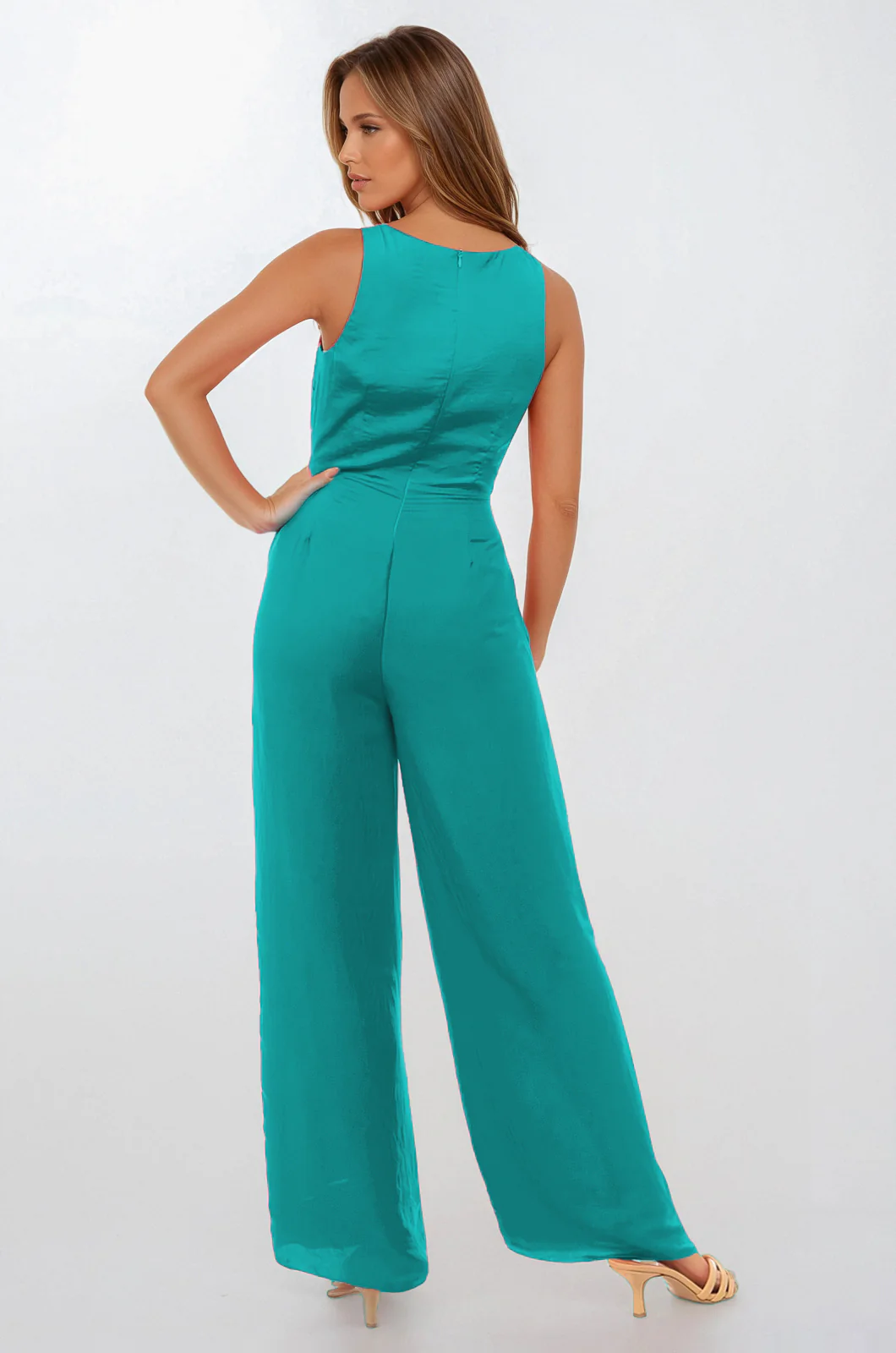 Waist Cut Out Jumpsuit- Scuba Blue ER117385